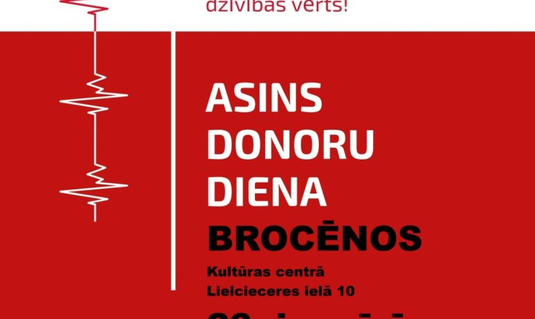 Asins donoru diena 23.janvārī Brocēnos, Lielcieceres ielā 10, Kultūras centrā no plkst.10.00-13.00. Par asins donoru var būt jebkurš vesels