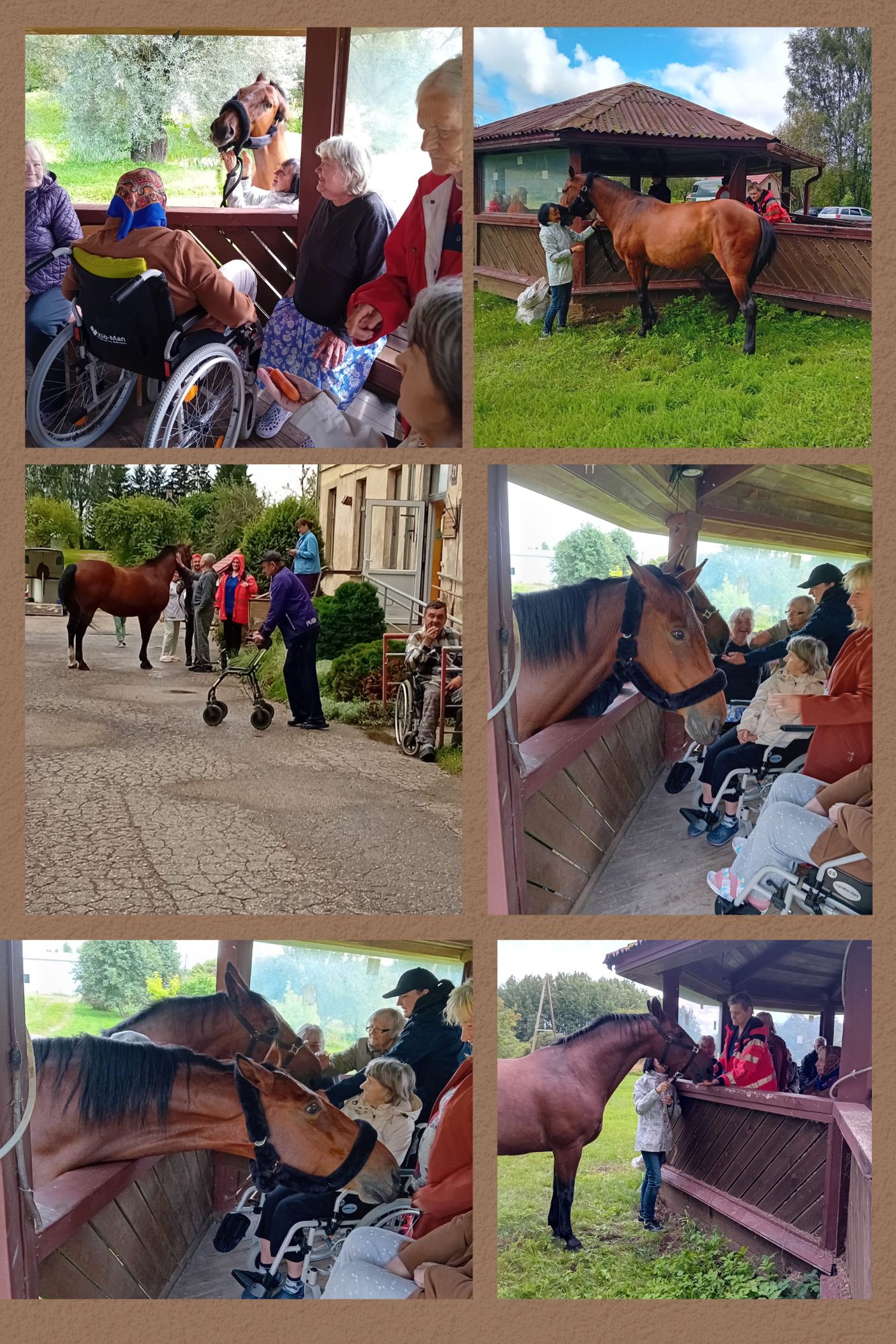 Īpaši aizkustinoši bija vērot mūsu iemītnieci Ainu, kura visu mūžu saistīta ar zirgiem, kā jāšanas sporta dalībniece. Tikšanās ar zirgu viņas acīs iededza prieka un jaunības mirdzumu, radot siltu un emocionālu brīdi mums visiem.